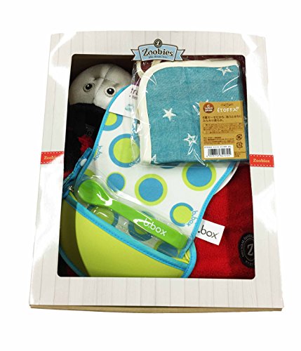 ブランケットにもなるぬいぐるみのズービーペッツに、お出かけ先で使えるビブと6重ガーゼでできたハンカチをセットにした、出産祝いにぴったりのギフト商品です。