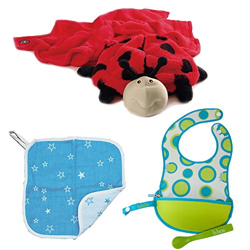 パパジーノ ズービーペッツ てんとう虫 出産 お祝い セット ビブ ガーゼ ハンカチ ブルー (AM_ZPG504-26)