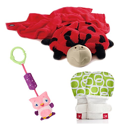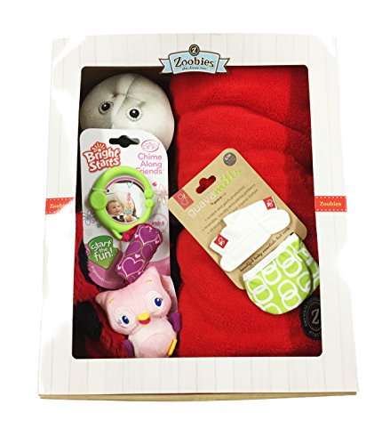 ブランケットにもなるぬいぐるみのズービーペッツに、引っ掻き防止ミトンとベビーカートイをセットにした、出産祝いぴったりのギフト商品です。