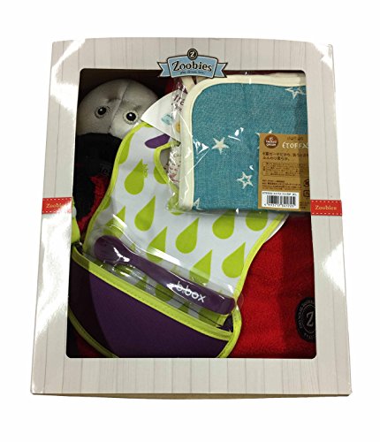 ブランケットにもなるぬいぐるみのズービーペッツに、お出かけ先で使えるビブと6重ガーゼでできたハンカチをセットにした、出産祝いにぴったりのギフト商品です。