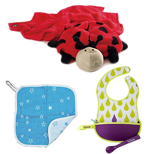 パパジーノ ズービーペッツ てんとう虫 出産 お祝い セット ビブ ガーゼ ハンカチ ブルー (AM_ZPG504-27)