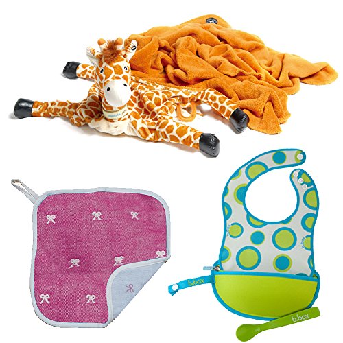ブランケットにもなるぬいぐるみのズービーペッツに、お出かけ先で使えるビブと6重ガーゼでできたハンカチをセットにした、出産祝いにぴったりのギフト商品です。