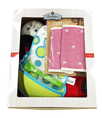 ブランケットにもなるぬいぐるみのズービーペッツに、お出かけ先で使えるビブと6重ガーゼでできた抱っこひものベルトカバーをセットにした、出産祝いにぴったりのギフト商品です。
