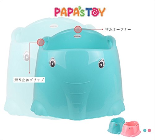 パパのおもちゃの象のバスは、私たちの赤ちゃんの安全にアンチスリップ機能を追加しました。 また排水が容易な大型排水システムと、入浴中に排水口を開けないように排水オープナで排水システムを開閉する機能にアップグレードしました。