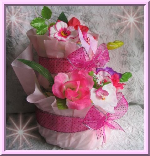 2段お花のピンクおむつケーキ<Sテープ>