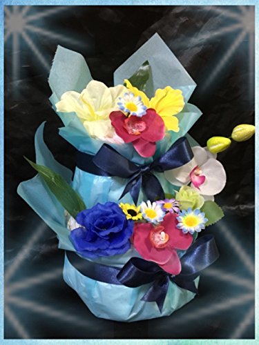 - 2段のおむつケーキになります。パンパースSテープ23枚とお花たっぷりで製作させて頂きます。