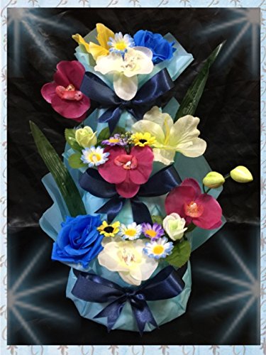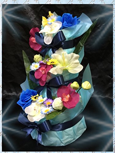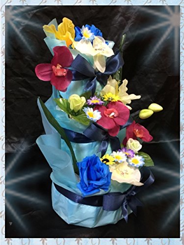 豪華3段お花のブルーおむつケーキ<Sテープ>