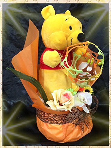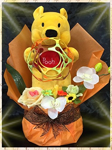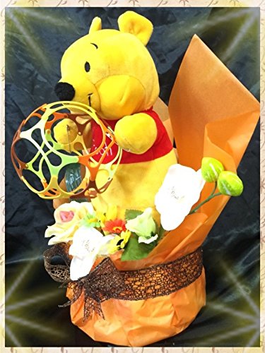 - プーさんのパペットがワミーボールを持っています。パンパースSテープ20枚での製作です。プーさんのパッペットは大きめで、しっかりとした作りとなっております。もちろん全て新品のお品です。お値段の判るようなタグ等は全て取り除いてからの製作ですので御安心下さい。