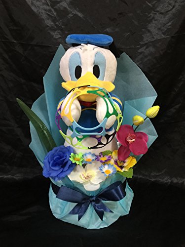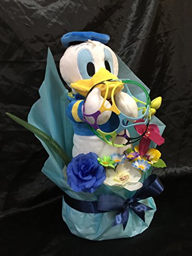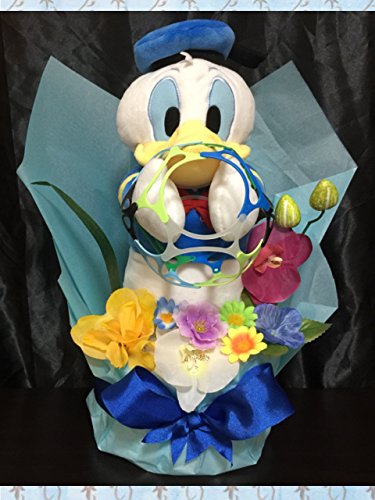 - ドナルドのパペットがワミーボールを持っています。パンパースMテープ18枚での製作です。ドナルドのパッペットは大きめで、しっかりとした作りとなっております。もちろん全て新品のお品です。お値段の判るようなタグ等は全て取り除いてからの製作ですので御安心下さい。