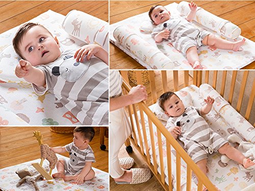 - 枕 - 科学的原理に基づいて製作された枕の中の溝が赤ちゃんの頭を正しい姿勢に維持させてくれ頭の重さを分散させてきれいな頭上を作るのに役立ちます。