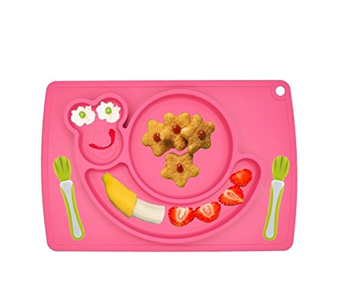 パーティーパーク ベビー キッズ お食事 離乳食 カタツムリ シリコン食器 プレート ひっくり返らない ピンク グリーン 2色 (ピンク)