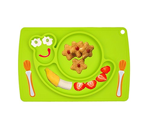 パーティーパーク ベビー キッズ お食事 離乳食 カタツムリ シリコン食器 プレート ひっくり返らない ピンク グリーン 2色 (グリーン)
