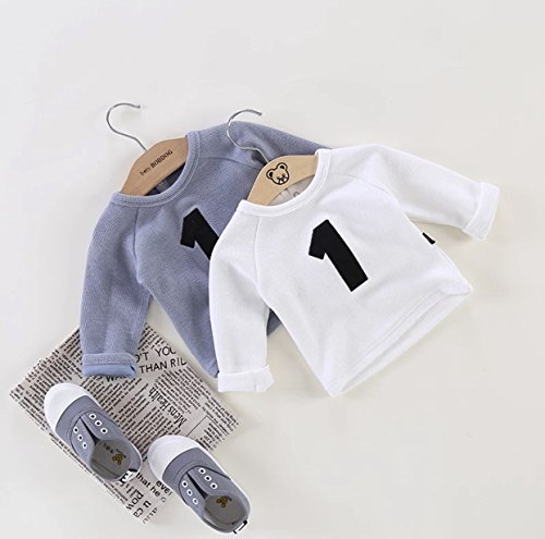 【パーティーパーク】 ベビー・キッズ お誕生日 普段着 ナンバー1 ロゴ入り 長袖 コットン トップス 選べる 2カラー(ホワイト・スモークブルー) (80㎝ ホワイト)