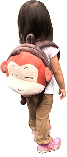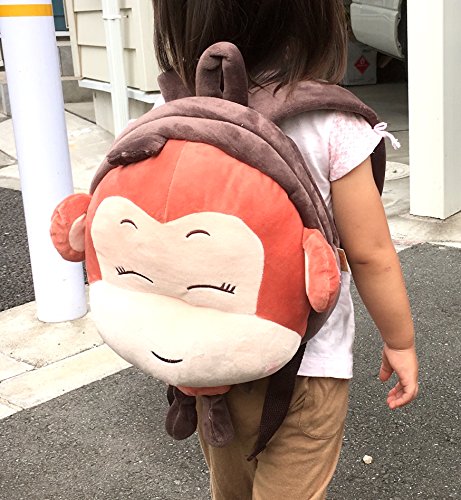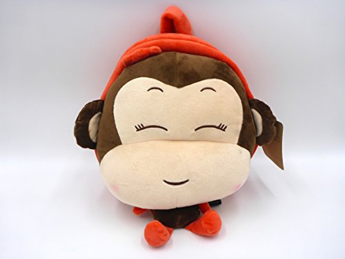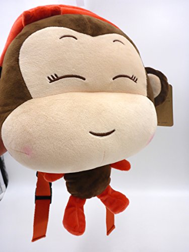 おさるさん ふわふわ リュック 子供用 キッズ ベビー お出かけに とっても 可愛い プレゼントにも 赤 x 茶