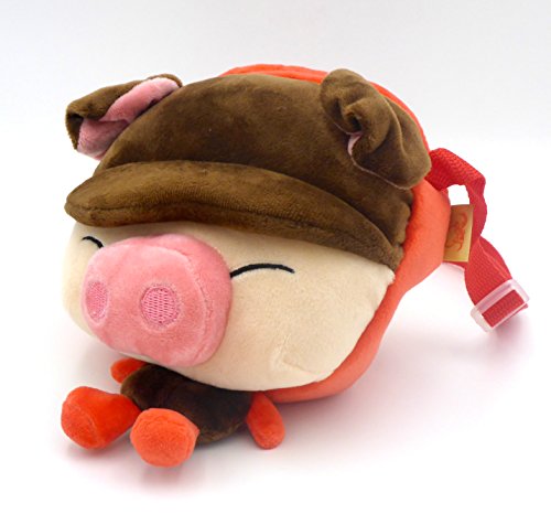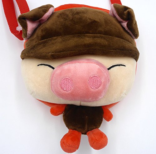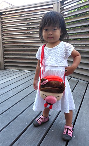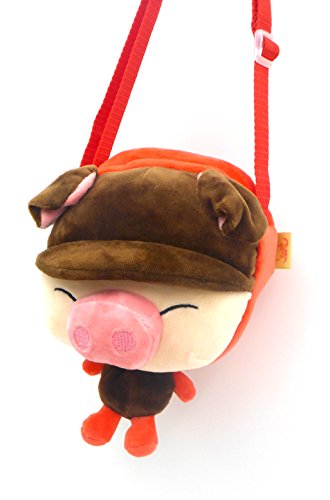 ぶたさん ふわふわ ショルダーバッグ キッズ ベビー 用 可愛い ミニポシェット 肩掛けバッグ (茶x赤)