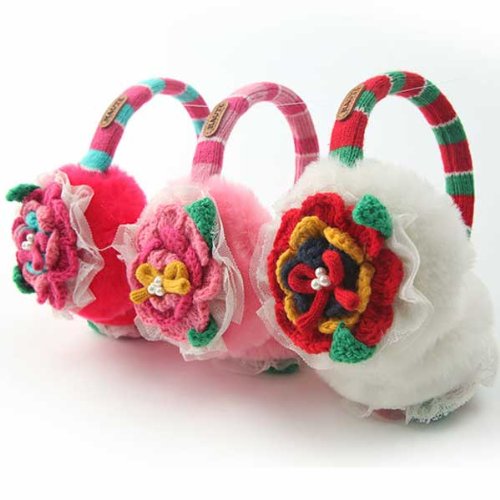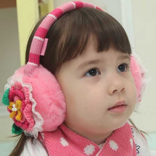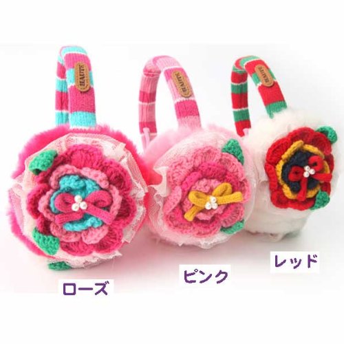 イヤーマフ 耳あて 耳カバー キッズ 子供 ニット 花 ピンク 防寒 あったか 秋 冬 ベビー 女の子 クリスマス プレゼント 誕生日 ギフト