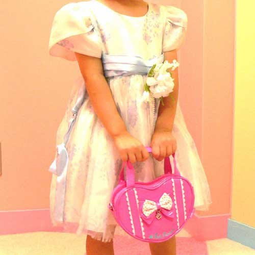 - 水玉リボンにシルバーのハートチャームが付いたキッズバッグ!
