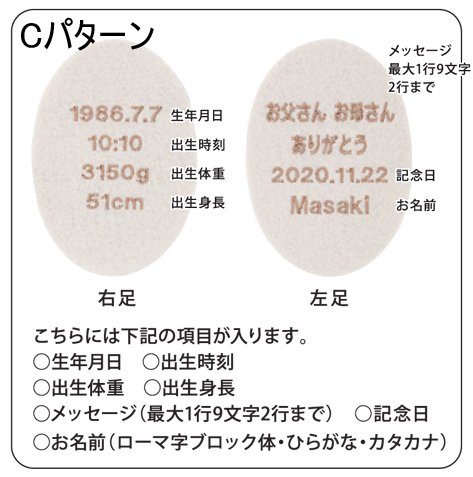 【C】生年月日・出生時刻・体重 ・身長 ・最大9字×メッセージ2行 ・記念日・お名前