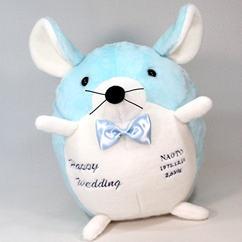 ねずみちゃんの体重ぬいぐるみ(男の子 十二支子年)ブルー完成品 生まれた時の体重で作る十二支のウェイトドール