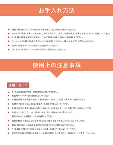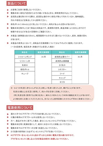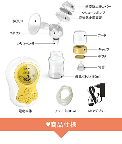 ●セット内容:電動本体、ACアダプター、チューブ、コネクター、さく乳口、逆流防止器セット(カバー・裏蓋・シリコーンポンプ)、キャップ、中フタ、フード、乳首、シリコーン弁、、母乳ボトル、取扱説明書