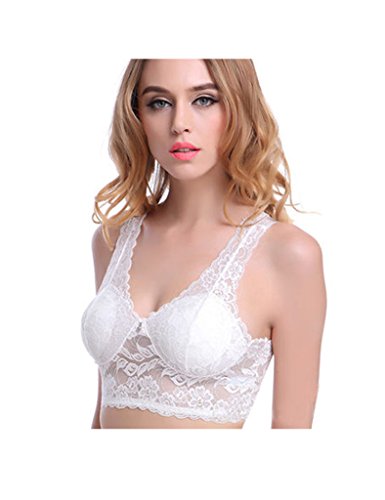 ビエスディディ レディース 無地 シームレス レース ノンワイヤー 薄パッド フルカップ 調整不可能広いストラップ 妊娠 ブラジャー ホワイト XXL