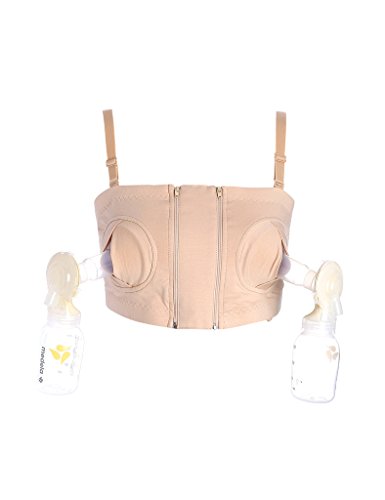 ビエスディディ レディース コットン 無地 ノンワイヤー パッドなし ダブルジッパー ハンドフリー ストラップ 搾乳器 ブラジャー フレッシュ L