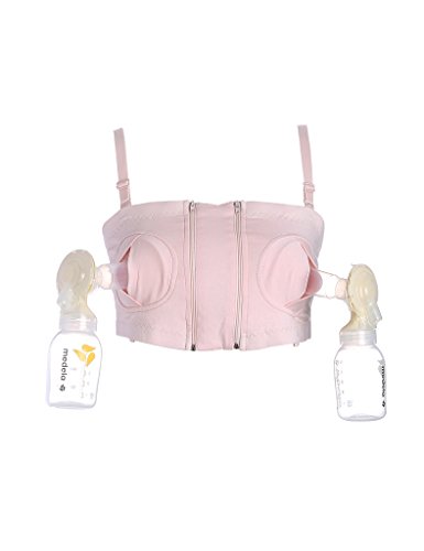 ビエスディディ レディース コットン 無地 ノンワイヤー パッドなし ダブルジッパー ハンドフリー ストラップ 搾乳器 ブラジャー ピンク M