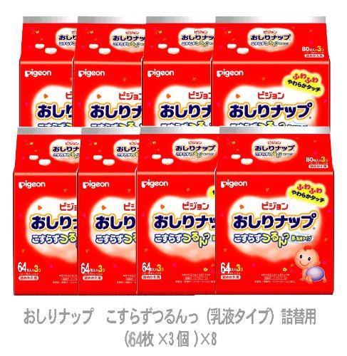 - 「64枚入」が3個パック!が8コ 超おトクな詰め替え用です。うんち汚れがつるんとふきとれる乳液タイプのおしりふきです。