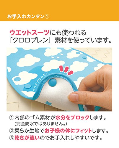 内部のゴム素材が水分をブロック。柔らか生地でお子様の体にしっかりフィット。乾きも速いのでお手入れ簡単です。