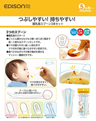 エジソンママ 離乳食スプーン 3本セット ブルー ケイジェイシー