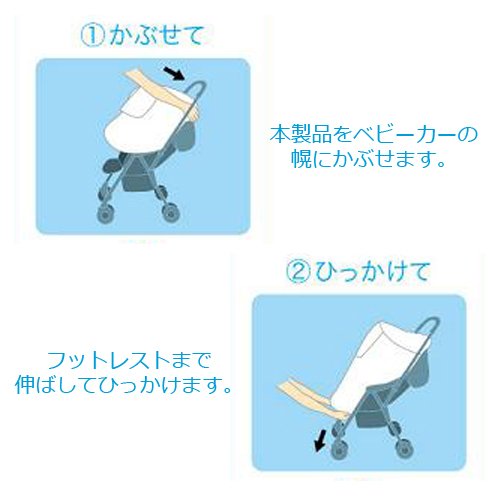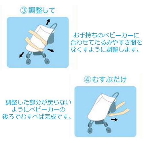 ・バギーやベビーカーに合わせてすき間やたるみが出来ないように調整して、最後に後ろで結べば完成です。