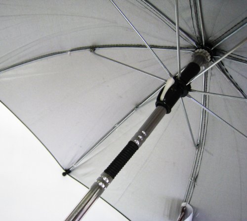 - 調節クリップをベビーカーにセットしたら、ワンタッチでカサだけ取り外せます。