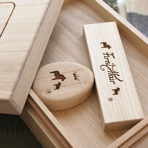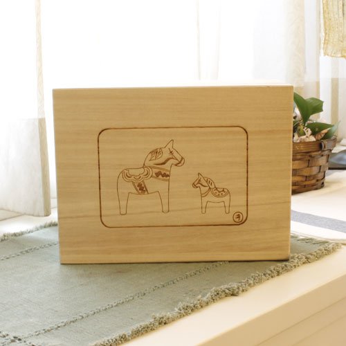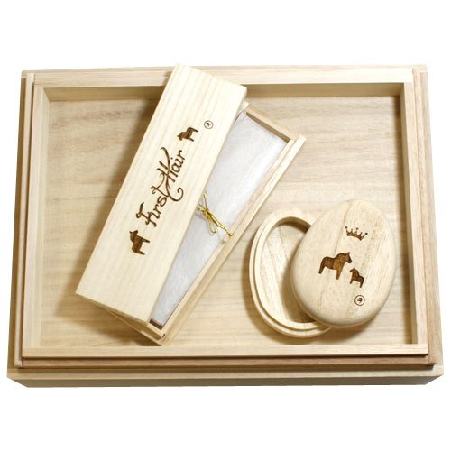 ビーグラッドストア メモリアルボックス ダーラナホース ファーストヘア へその緒ケースセット 高級桐天然木使用