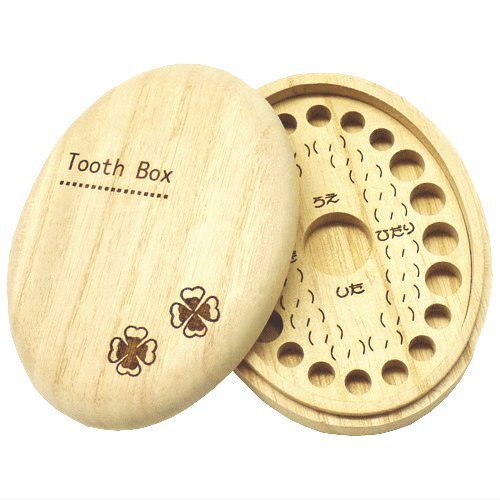 - 高級桐材を使用した楕円形のかわいい乳歯保存ケース。歯が抜けた年齢と日付が書けます。透明アクリル板付きなので、開けたときに乳歯がこぼれる心配がありません。