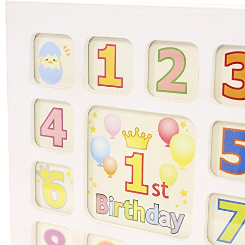 ビーグラッドストア 12ヶ月ベビーフォトフレーム 木製 日本の職人手作り 国産 (アンティークホワイト)