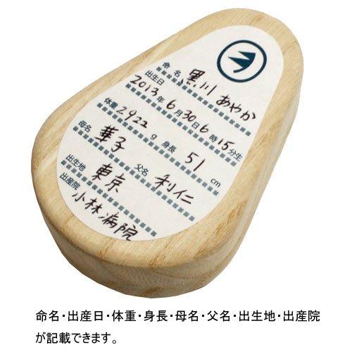 ケースには、お子さまのお名前、産まれた時間、日付、体重、身長が直接書き込めるようになっており、とっても可愛く、だんだんと愛着がわいてくるへその緒ケースです。