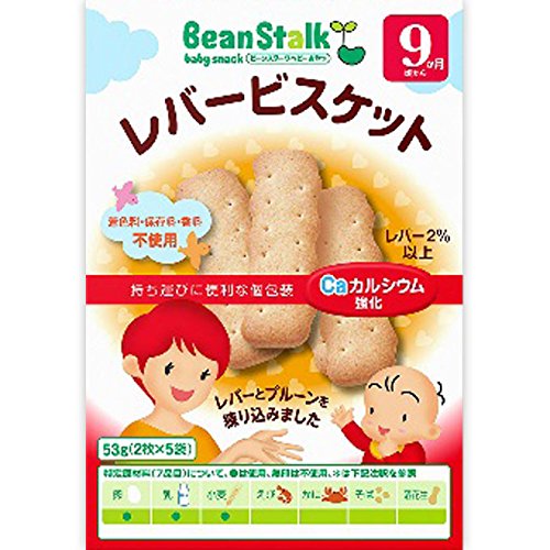 - ●「ビーンスターク レバービスケット 53g 9ヵ月頃から」は、レバー粉末とプルーンを練りこんで焼きあげた香ばしいビスケット(ベビーフード)です。