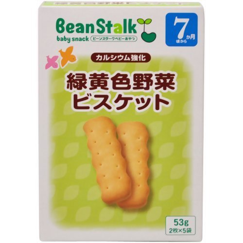 • ・「ビーンスターク 緑黄色野菜ビスケット 53g 7ヵ月頃から」は、緑黄色野菜を中心に、6種類の野菜を練りこんで焼きあげたビスケット(ベビーフード)です。