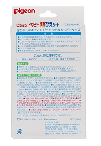 「ピジョンベビー 熱ひえシート 12枚入」は、冷却効果が8時間持続する冷却シート子供用です。赤ちゃんのおでこにピッタリのベビーサイズ(40mm*80mm)。シートにはかわいいペンギンの絵柄入りです。お肌にやさしい無着色・無香料。皮ふアレルギーテスト済み(すべての方にアレルギーが起きないというわけではありません)。新生児からお使いいただけます。12枚入。 冷却シート 子供用 冷却シートは、急な発熱の時や暑さ対策やリフレッシュにも使えるシートタイプの冷却剤です。冷却ジェルがピタっと体に密着し、ほてりをやわらげます。冷却シートは冷却持続時間が長いものが多いので、長時間の使用にも向いています。お子様にも使える小さめサイズ。