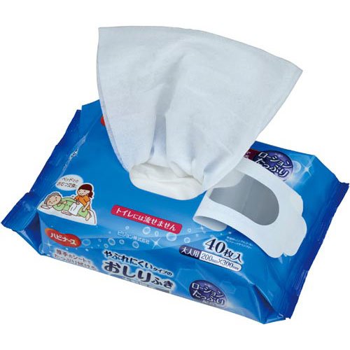 大判厚手でのシートで、しっかり拭くことができ、ローションもたっぷり配合(当社比)。