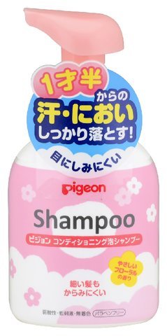 「ピジョン コンディショニング泡シャンプー やさしいフローラルの香り 350ml」は、たくさん動く1才半頃からの、汗やにおいをしっかり落とすシャンプーです。目にしみにくい泡シャンプーで、「1才半頃のお子さま向けの洗浄力」と、「ベビースキンケア基準の低刺激」をあわせ持っています。弱酸性・低刺激・無着色・パラベンフリーです。泡切れのよいふわふわの泡で、お子さま特有の細い髪もからみにくい、コンディショニング成分配合。やさしいフローラルの香り。