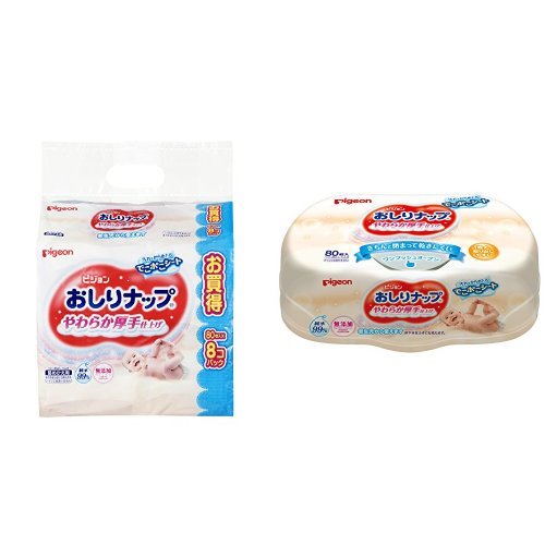 【セット買い】 ピジョン おしりナップ やわらか厚手仕上げ 詰めかえ用 80枚入×8個パック + ボックス 80枚入