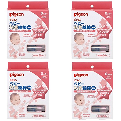 【セット品】ピジョン ベビー粘着綿棒 (細軸タイプ) 50本入 ×4個