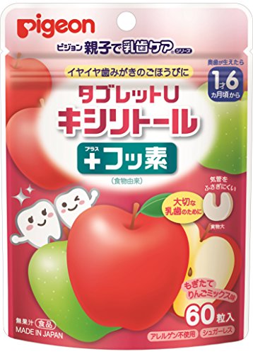 ピジョン 親子で乳歯ケア タブレットU キシリトール+フッ素 もぎたてりんごミックス味 60粒入 1歳6ヶ月頃~歯のトラブルが多いマタニティ期にも
