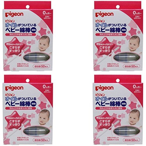 【まとめ買い】ピジョン オイルがついてるベビー綿棒(細軸タイプ) 50本入【×4個】