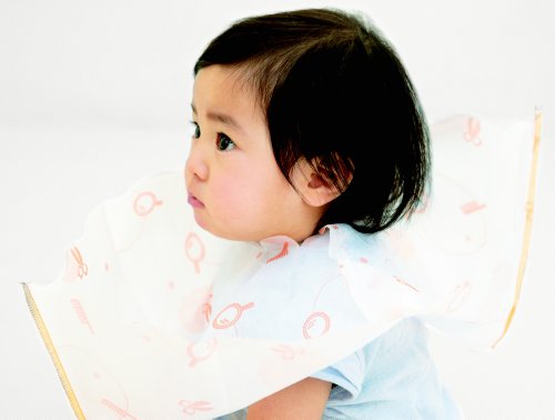 赤ちゃんが動いてもケープがずれたりせず、前後のポケットが髪の毛をしっかりキャッチ。