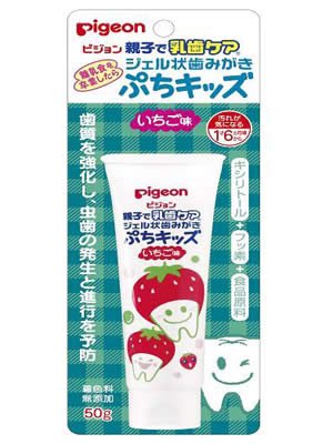 「ピジョン ジェル状歯みがき ぷちキッズ いちご味」は、離乳食を卒業した、1才6ヵ月頃からの乳歯のためのフッ素配合歯磨きです。歯質を強化し、虫歯の発生と進行を予防。いちご味。 内容量 : 50g