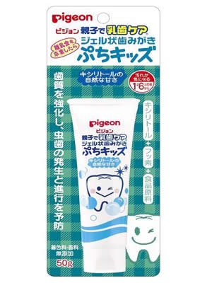 「ピジョン ジェル状歯みがき ぷちキッズ キシリトール」は、離乳食を卒業した、1才6ヵ月頃からの乳歯のためのフッ素配合歯磨きです。歯質を強化し、虫歯の発生と進行を予防。キシリトールの自然な甘さ。 内容量 : 50g