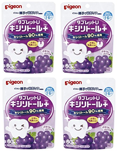 【まとめ買い】ピジョン 親子で乳歯ケア タブレットU ぶどう味 60粒入×4個