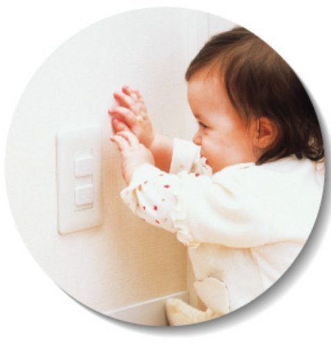 使わないコンセントにカバーをし、いたずらや不慮の事故による感電やショートを防ぐコンセントキャップ。一般家庭のコンセントに対応しているので、コンセントにそのまま差し込むだけで使用できる。使わないコンセントキャップを保管するためのホルダーと取り外し用プレートがついている。